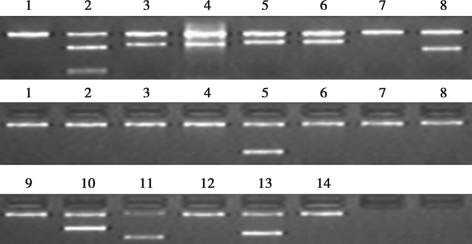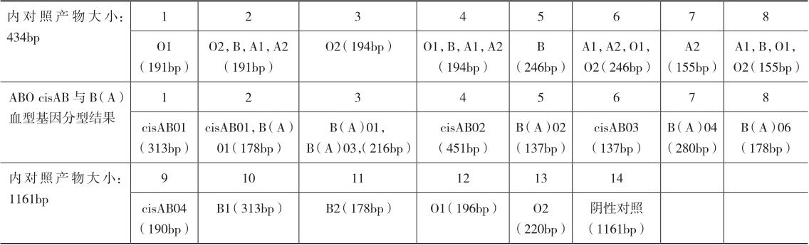 ABO血型基因分型和ABO cisAB与B(A)血型基因分型对比,结果见图1-10、表1-12。