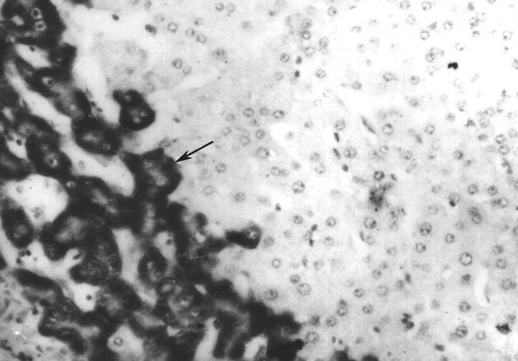 上述改变可见于整个肝腺泡,但在靠近中央静脉盲端的Ⅲ区损伤最严重。主要发生在Ⅰ区的损伤则较少见,但有时这是甲型病毒性肝炎的特征。Ⅲ区内肝细胞损伤的程度也不同,有的细胞损伤严重,表现为点状或灶状坏死。有些更严重的病例,坏死可更严重。肝血窦塌陷,导致在一些急性病毒性肝炎中所见的门管区扩大。