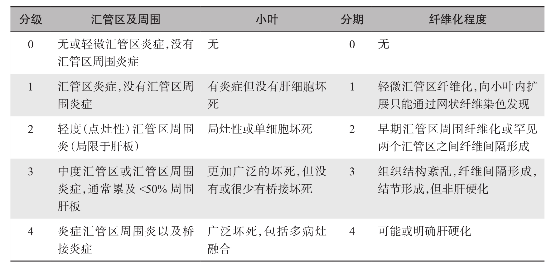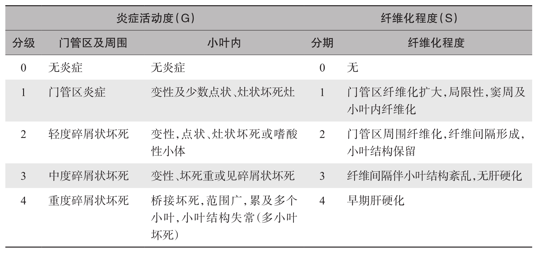 表4-18-1 慢性肝炎分级、分期标准