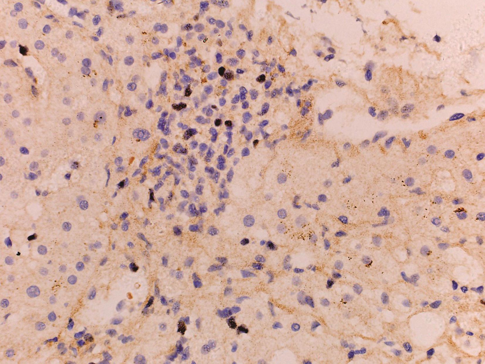 图4-18-6 肝组织HCVAg免疫组化染色
