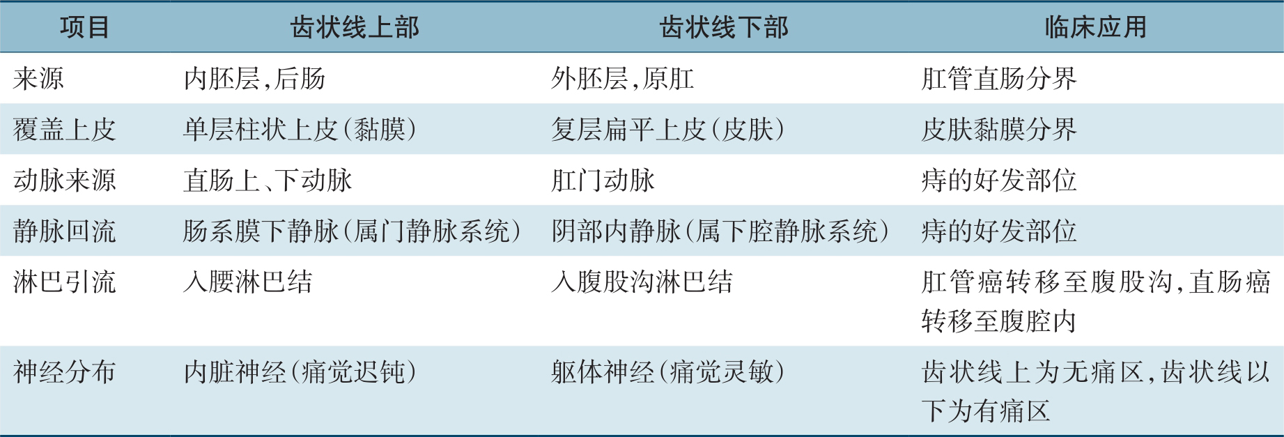 表2-3 齿状线上、下部结构比较