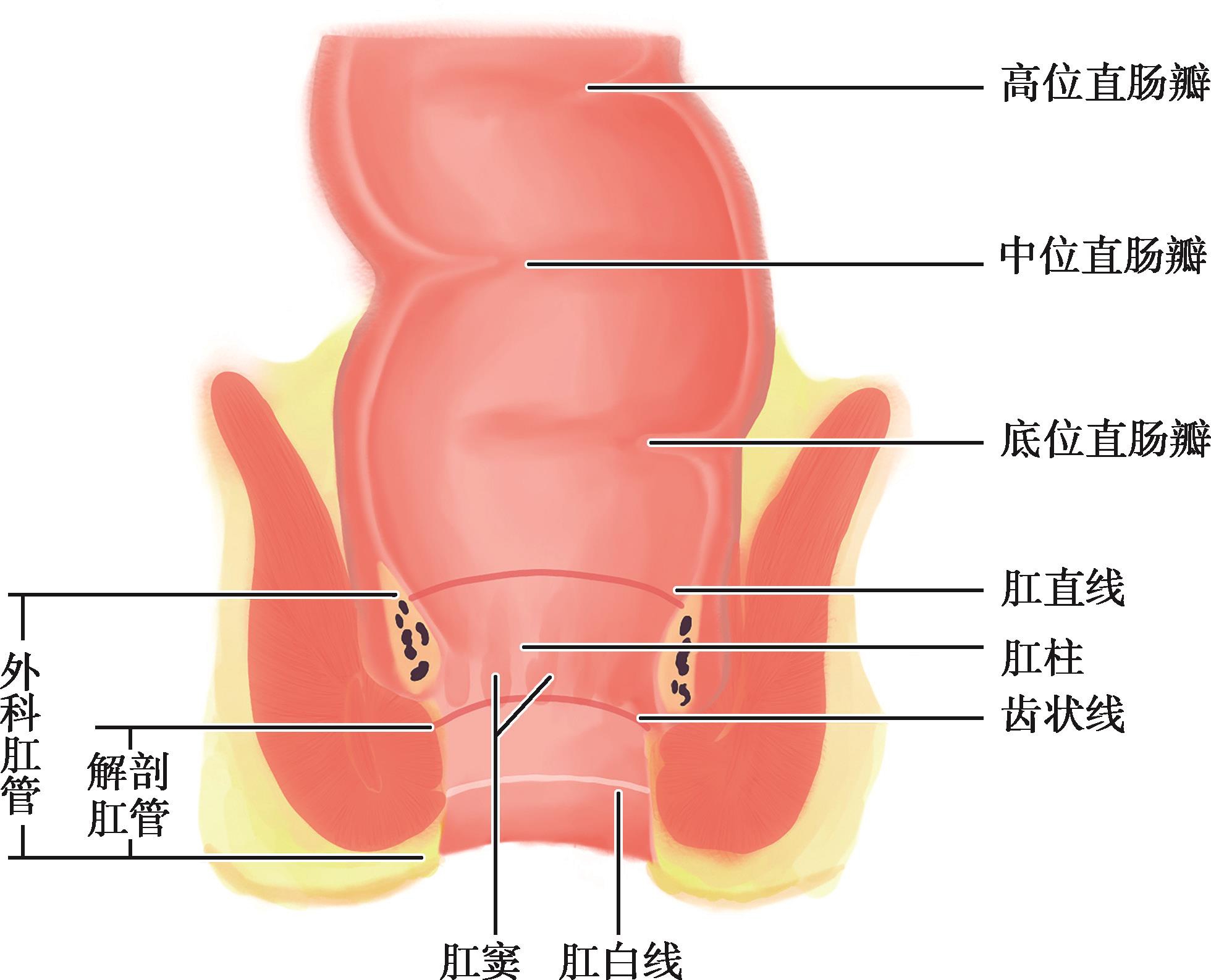 肛瓣:为两直肠柱底之间的半月形黏膜皱襞,有6~12个。肛瓣是比较厚的角化上皮,没有“瓣”的功能。