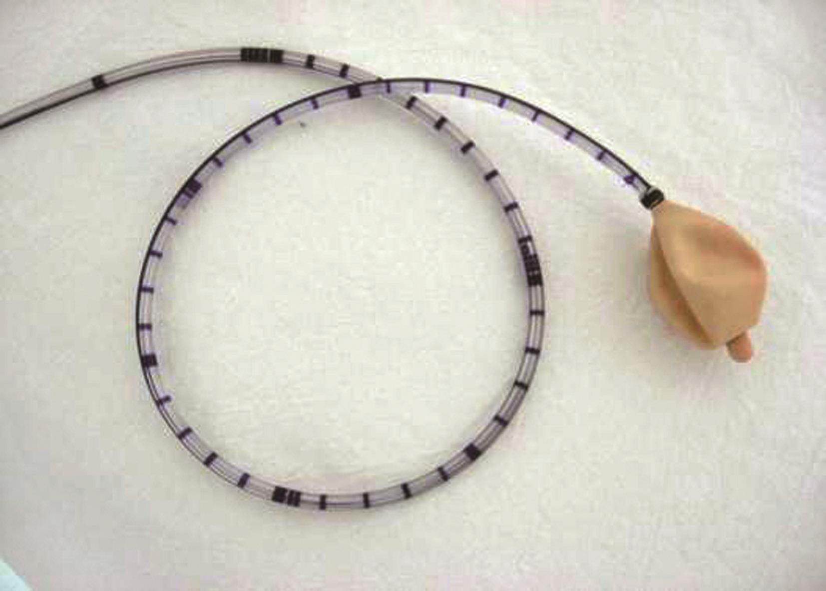根据检查的目的和要求,测压导管也有不同的型号,应用于不同疾病的诊断和治疗。诊断HD通常用4通道气囊导管,导管最前端为充气气囊,4个测压孔位于气囊后1cm,呈放射状分布于导管的同一横断面上,可以测量肛管内同一部位不同象限的压力值。另外,测压孔也可呈纵向排列于导管上,每个测压孔之间距离1cm,用于同时测量直肠和肛管内不同部位的压力值。