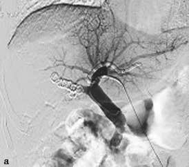 A、a.弹簧微钢圈栓塞门静脉右支;