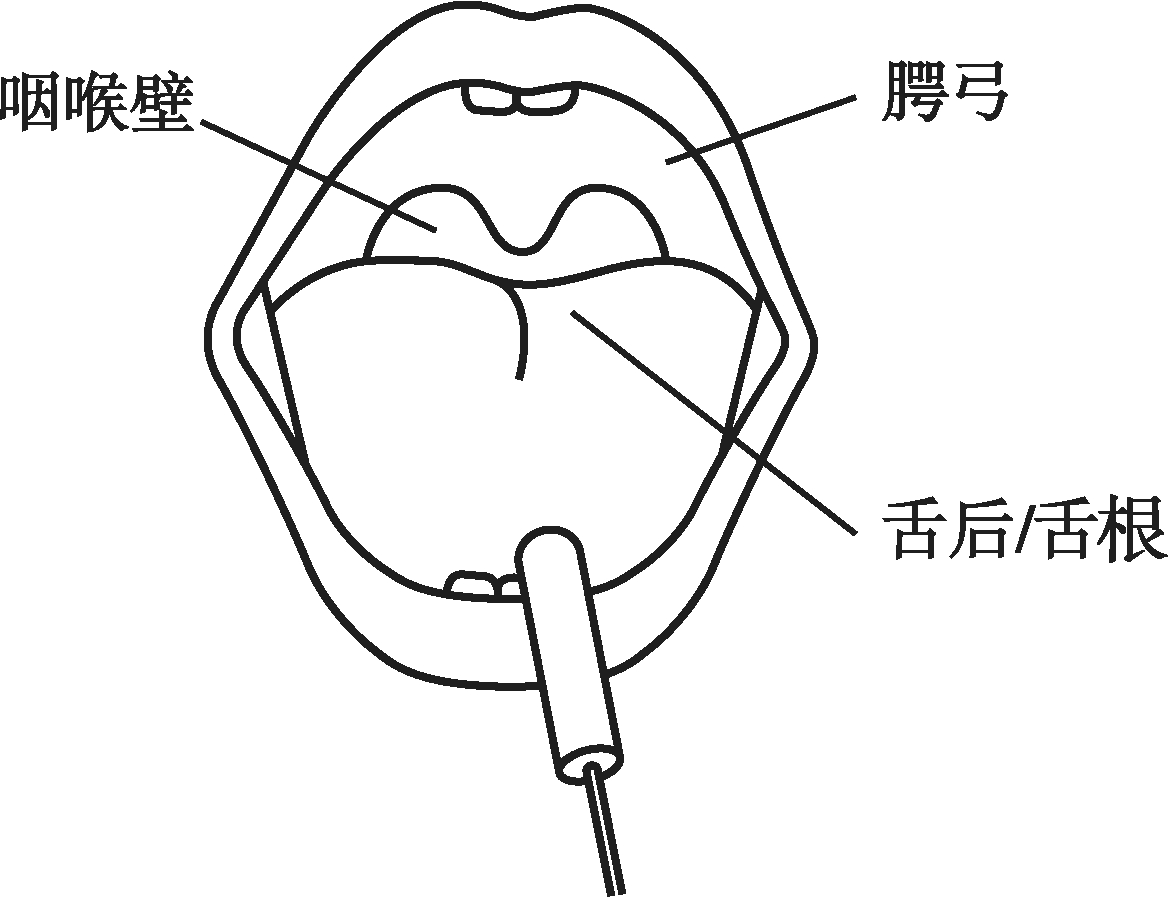3)寒冷刺激:口唇闭合差(咬肌无力)、鼻咽腔闭锁差是咀嚼障碍常见的表现。寒冷刺激法能有效提高口唇、脸颊、软腭和咽部的敏感度,使咀嚼能够完成。用冰棉棒刺激腭咽弓(图2-39),同时发“啊”音,可起到以下作用:①提高对食物知觉的敏感度;②减少口腔过多的唾液分泌;③通过刺激,提高对进食吞咽的注意力。