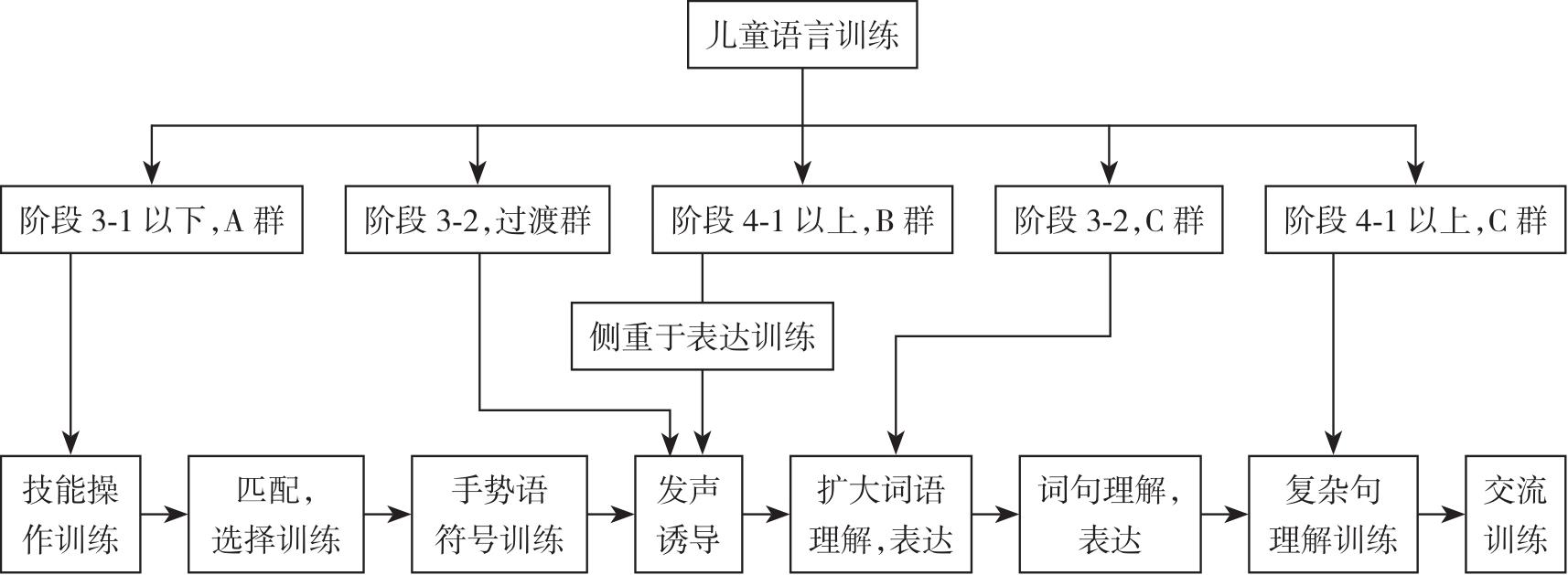 根据儿童的评估结果,制定语言训练的长期目标与短期目标,按照语言发育规律制订个别训练计划及具体语言训练内容,除了语言功能训练还要进行实际语言交流能力的训练。