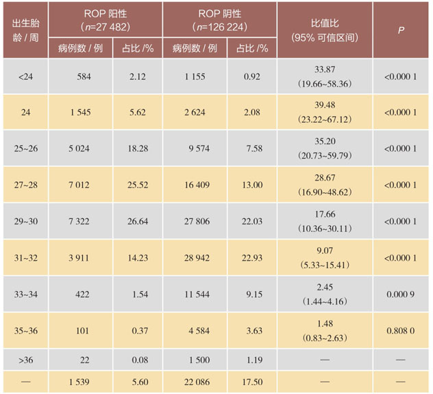 注:“—”为数值缺失。ROP,早产儿视网膜病变