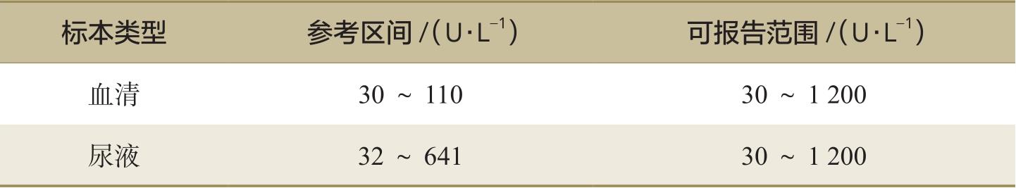 试剂说明书指出AMY测定的参考区间及可报告范围见表5-1。