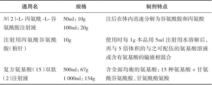 表3-17 常用的谷氨酰胺二肽制剂及其特点