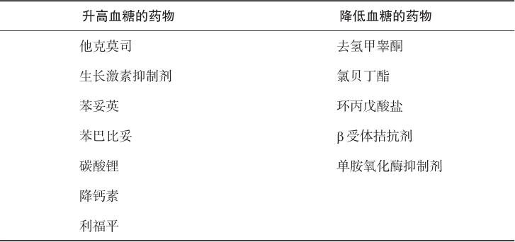 此外,有些药物可以影响血糖水平(表4-5),给予肠外营养的患者在使用上述药物时应当加强监测。患者经其他给药途径也可能引入葡萄糖,如静脉血液透析、腹膜透析、抗生素滴注等,也应当根据葡萄糖的实际使用量调整静脉营养的成分。另外还需按照比例增加胰岛素用量,增加血糖监测次数(每4~6小时1次),必要时停药至血糖恢复正常水平。