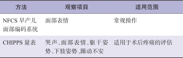 表1-6 美国儿科学会推荐早产儿疼痛评估量表