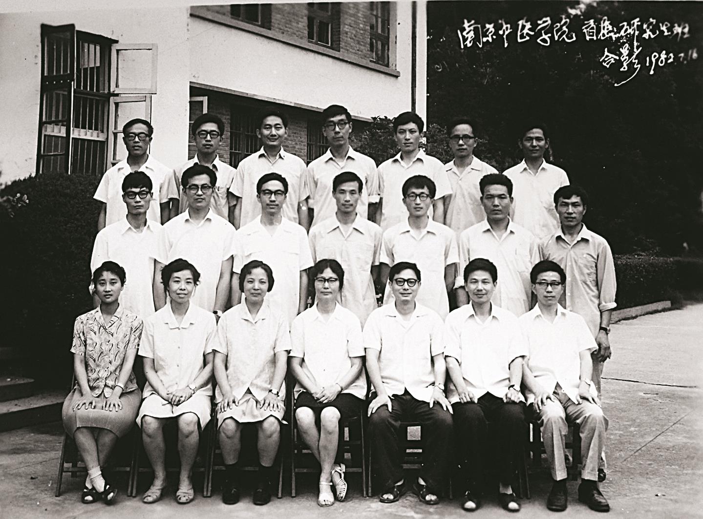 图3 南京中医药大学首届全体研究生合影李玉堂(后排右2)担任研究生班班长