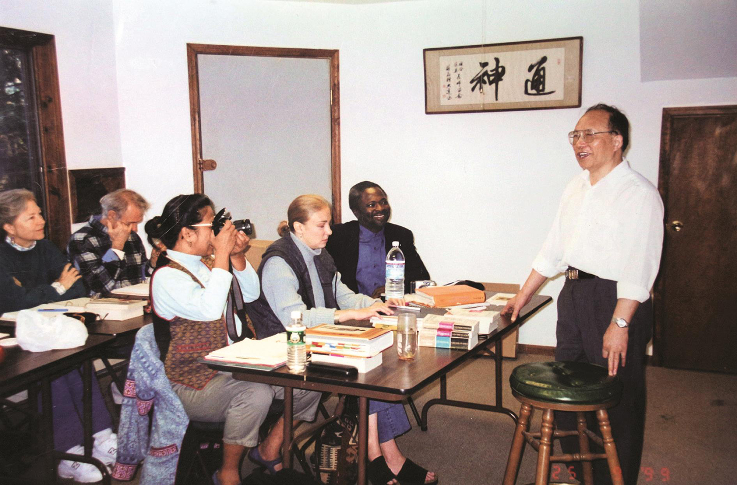 1998年10月,为了让针灸教学走出国门,扩大南京中医药大学在国外的影响,培养更多更优秀的外国针灸医生,南京中医药大学与美国东部地区的中华医疗康复中心签订了联合办学协议。李玉堂受学校委派,成为该中心第一个针灸特聘教师。在短短的一年时间里,他独自完成了中医基础理论、中医诊断学、中药学、方剂学、经络腧穴学、刺法灸法学、针灸临床治疗学、推拿学、中医内科学、妇科学和儿科学等十二门中医课程的英语教学任务。3年后,这批学生都通过了美国针灸执业医师资格的考试。该康复中心负责人施祖谷先生有感于李玉堂严肃认真、勤勤恳恳的教学态度,为南京中医药大学慷慨捐赠20万元人民币设立施祖谷奖教金,奖励在教学第一线做出突出贡献的老师(图9)。