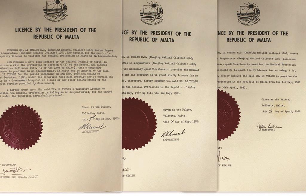 图6 李玉堂教授在马耳他共和国的行医执业证书