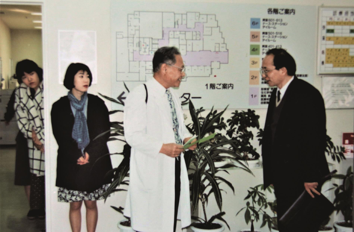 1994年,经过高水准的日语考试和有关部门的严格审核,作为第一个高级访问学者,李玉堂被派往日本高知市爱和病院进行访问学习。3个月时间里,他一方面向日本同行介绍我国目前针灸的研究现状和进展,与同行相互切磋,相互交流,同时了解日本针灸的现状,拓展针灸研究及诊疗思路,另一方面,学习日本医院先进的管理经验和提高自己的临床技能。此次访问学习,他开阔了视野,学习了经验,加深了中日同行了解,增进了彼此友谊,拉开了中日院际交流的序幕(图7)。