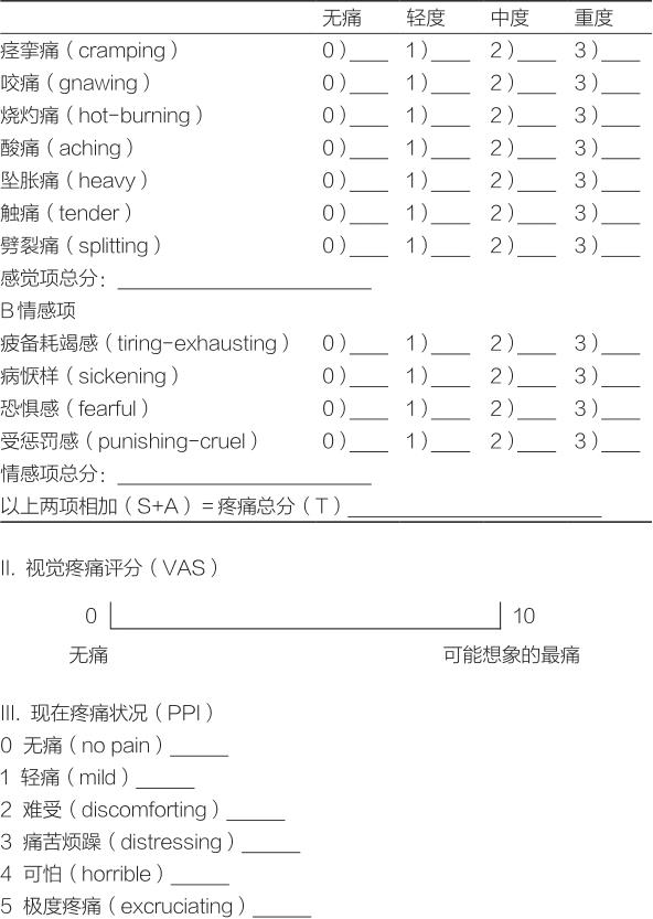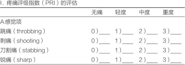 表1 麦吉尔疼痛问卷(McGill pain questionnaire, MPQ)