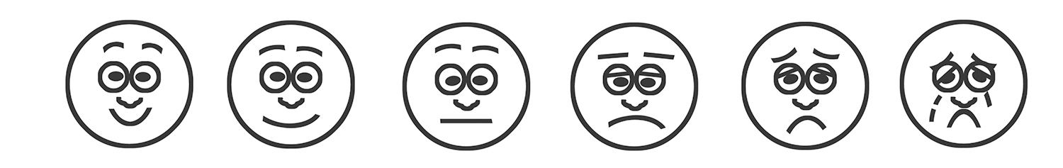 主要以表情图形区分疼痛程度,婴儿或无法交流的患者可采用此方法(图15)。
