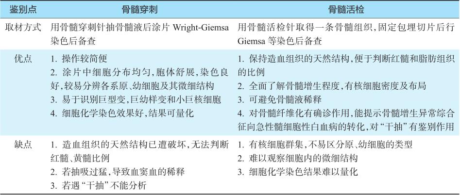 骨髓穿刺及骨髓活检的优缺点见表4-5。