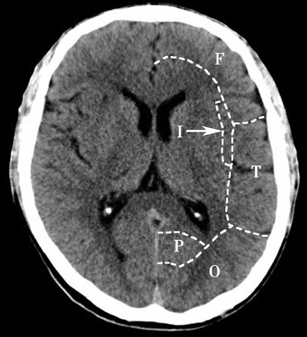 T.颞叶;F.额叶;O.枕叶;I.岛叶;P.顶叶