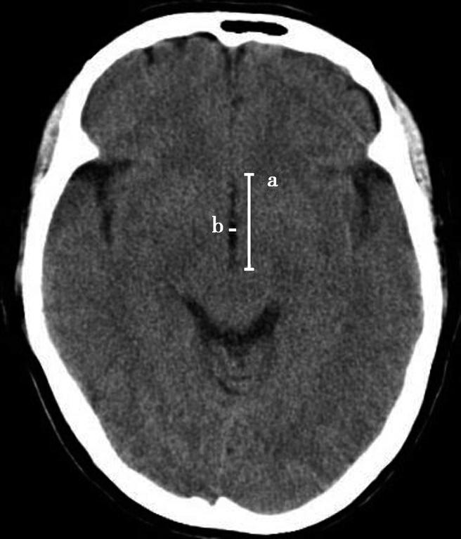 a线.第三脑室前后径;b线.第三脑室宽径