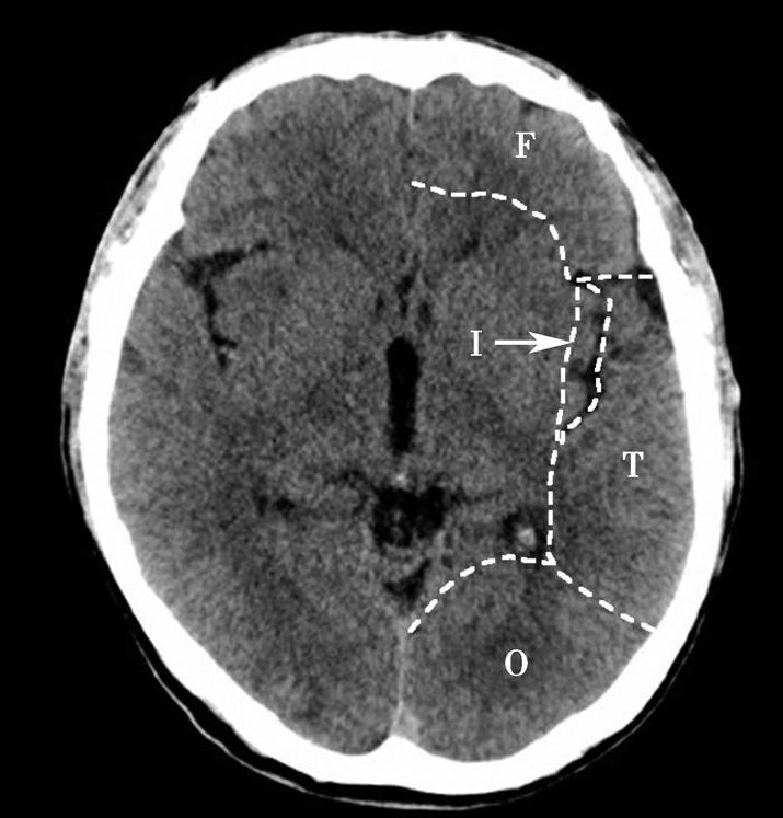 T.颞叶;F.额叶;O.枕叶;I.岛叶