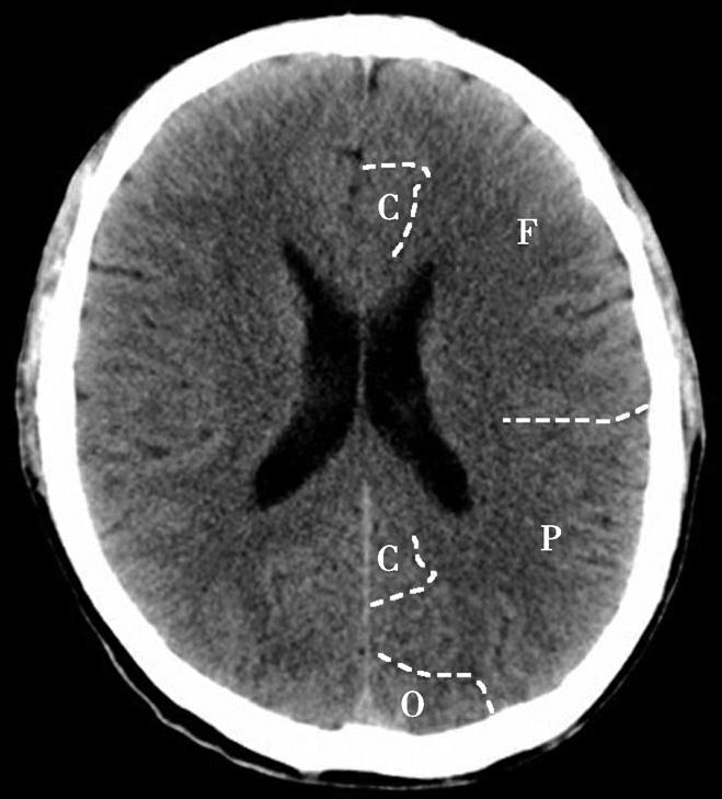 F.额叶;O.枕叶;P.顶叶;C.扣带回