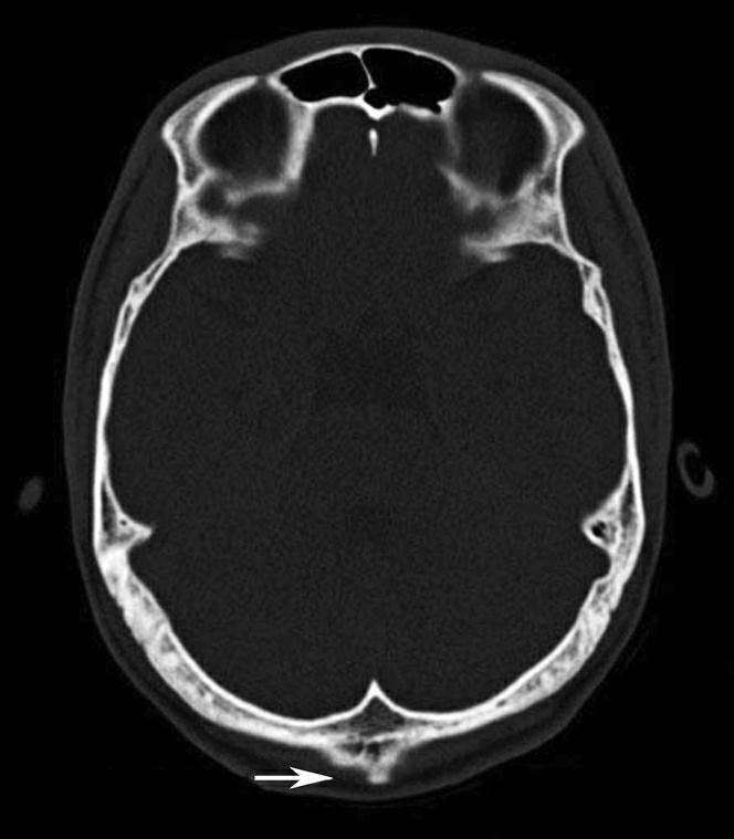 图1-2-81 枕骨隆突(箭)