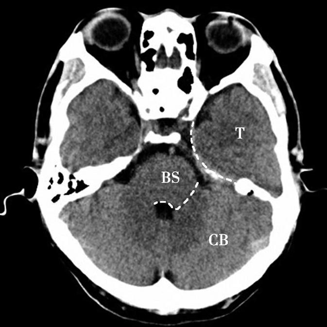 CB.小脑;BS.脑干;T.颞叶