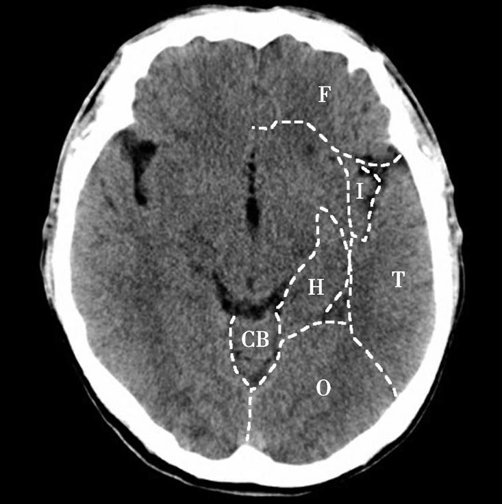 CB.小脑;T.颞叶;F.额叶;O.枕叶;H.海马回及海马结构;I.岛叶