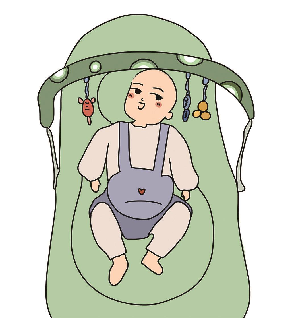 将婴儿妥善地放在家长的臂弯里,家长的手臂做轻柔、小幅度的半圆形摇晃动作,在这个过程中婴儿的眼睛可以自由地转动,头部不断地向前、后、左、右移动以追寻周围的物体。在这个游戏中,家长应该注意左右手轮换抱孩子,以使孩子的两只眼睛都能得到视刺激,当然家长也可以选择用普通的摇篮带孩子进行类似的游戏,也能收到同样的效果。