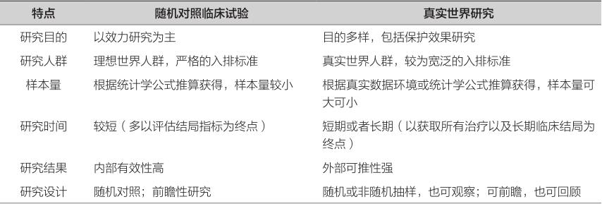表4-1 随机对照临床试验与真实世界研究区别对照表