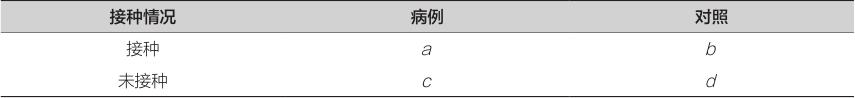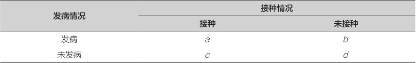 VE =(1– OR )×100%=(1– ad / bc )×100%。其中 VE 表示疫苗保护效果, OR 表示比值比。
