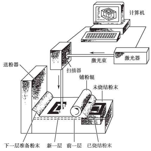 图1-16 选区激光烧结技术工艺原理
