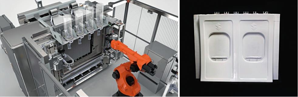 图1-10 竖直平面3D打印机及其打印的飞机壁板