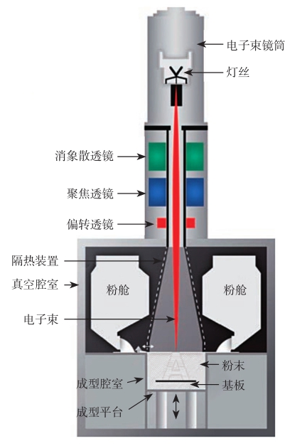 图1-19 电子束熔化成型技术工艺过程示意图
