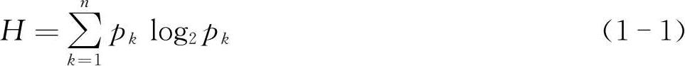美国数学家、信息论的奠基人克劳德·艾尔伍德·香农(Claude Elwood Shannon)在他的著名论文《通信的数学理论》(1948年)中提出计算信息量的公式:即一个信息由 n 个符号构成,符号 k 出现的概率为 p k ,则有