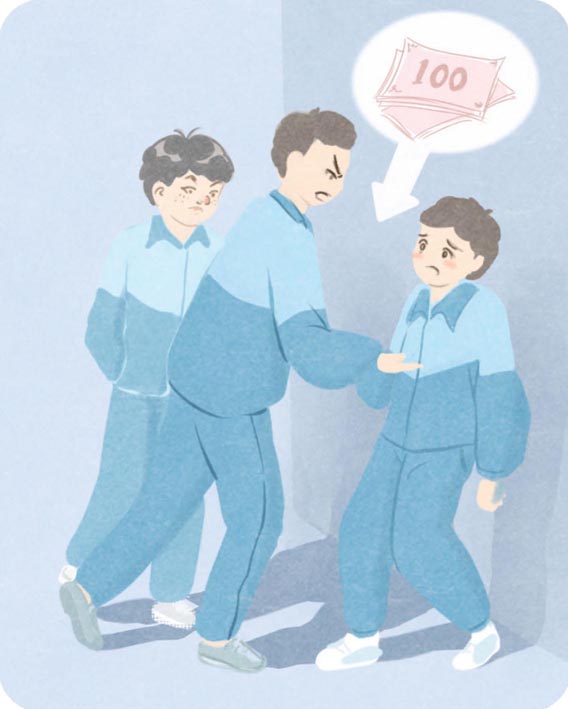 3.财物欺凌,指破坏、索要他人财物的行为。比如:故意损坏、抢夺、强行索要他人的学习用品、钱财等,使他人的财产遭受损失。