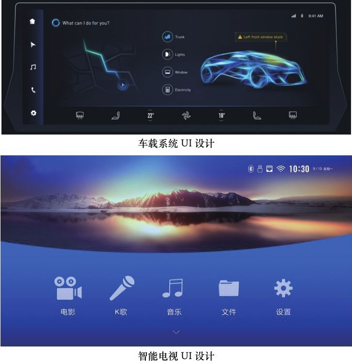 除了上述终端设备需要用到UI设计外,当今市场中的许多其他终端设备同样需要用到UI设计,如车载系统、智能电视等,如图1-4所示。