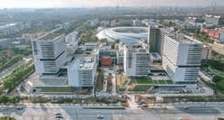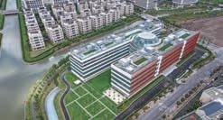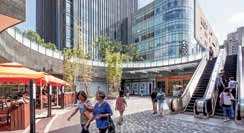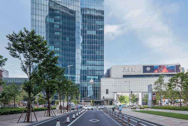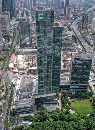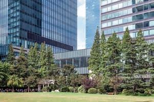 以办公、商业、酒店为主要业态构成的上海越洋广场,位于上海市重点开发区域的静安寺地区中心,与静安公园邻接为一体。该广场是以“城市与自然融合的媒体”为设计理念而实施的大型开发建设项目。具体设计特点有:设置在平台之上的低层商业、面向公园的立体空间、与公园形成一体的外部公共空间等。该项目为当地创造并提供了新的城市中心景观环境。
