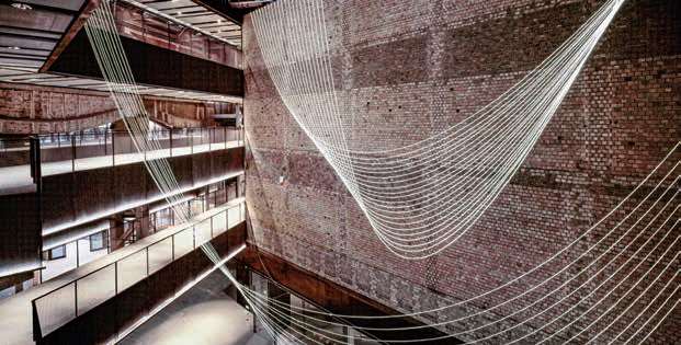 建筑内巨大的混凝土柱子贯穿中庭,从而可以直观展现现存船厂的规模之大。东端的剧院通过再利用的管道和桁架,使工厂原本的历史空间感得以强化。