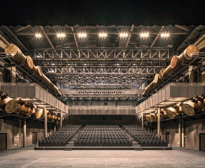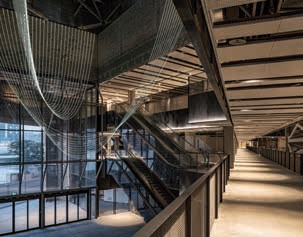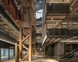 建筑内巨大的混凝土柱子贯穿中庭,从而可以直观展现现存船厂的规模之大。东端的剧院通过再利用的管道和桁架,使工厂原本的历史空间感得以强化。