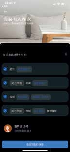 离家场景也可叫作出门场景或上班场景,在家庭成员出门时自动关闭灯和电器设备,这样不仅节能环保还更安全。针对特殊的情况还可以设置不同的离家场景,比如在单独居住的房屋内,设置出门后窗帘定期开启或关闭,形成有人在家的假象。