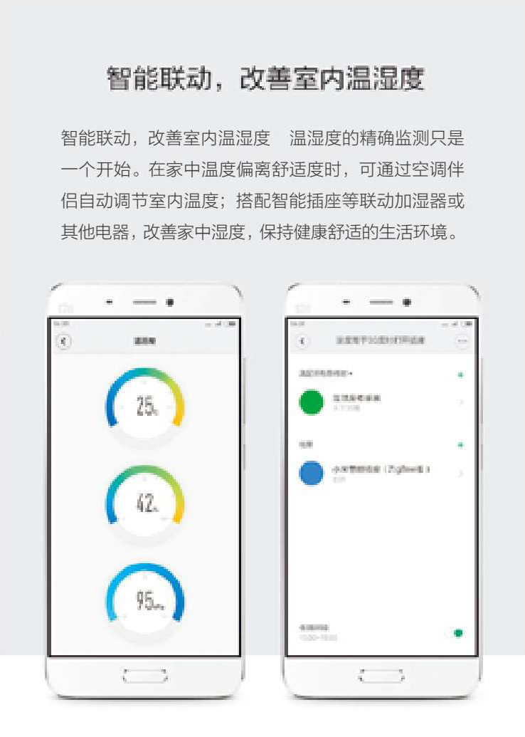 温湿度传感器产品图和联动示意图(图片来源:绿米联创)