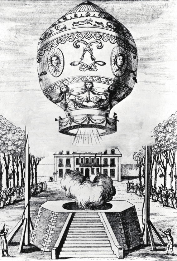 1783年,法国一位造纸商的儿子蒙特哥菲尔兄弟,制作了一个很大的热气球,容积约1700立方米。球囊底部用铁链吊挂着火盆,用稻草投入燃烧器加热空气,然后热气球载人飞上了950米的高空,在巴黎上空翱翔约25分钟。