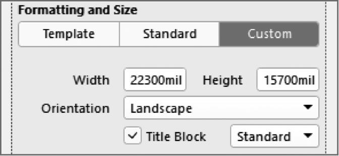 3)自定义图纸。如果想自己设置图纸的大小,选中“Custom”选项,如图2-21所示,并在该选项组的文本框中填入图纸Width(宽)和Height(高)的数值。
