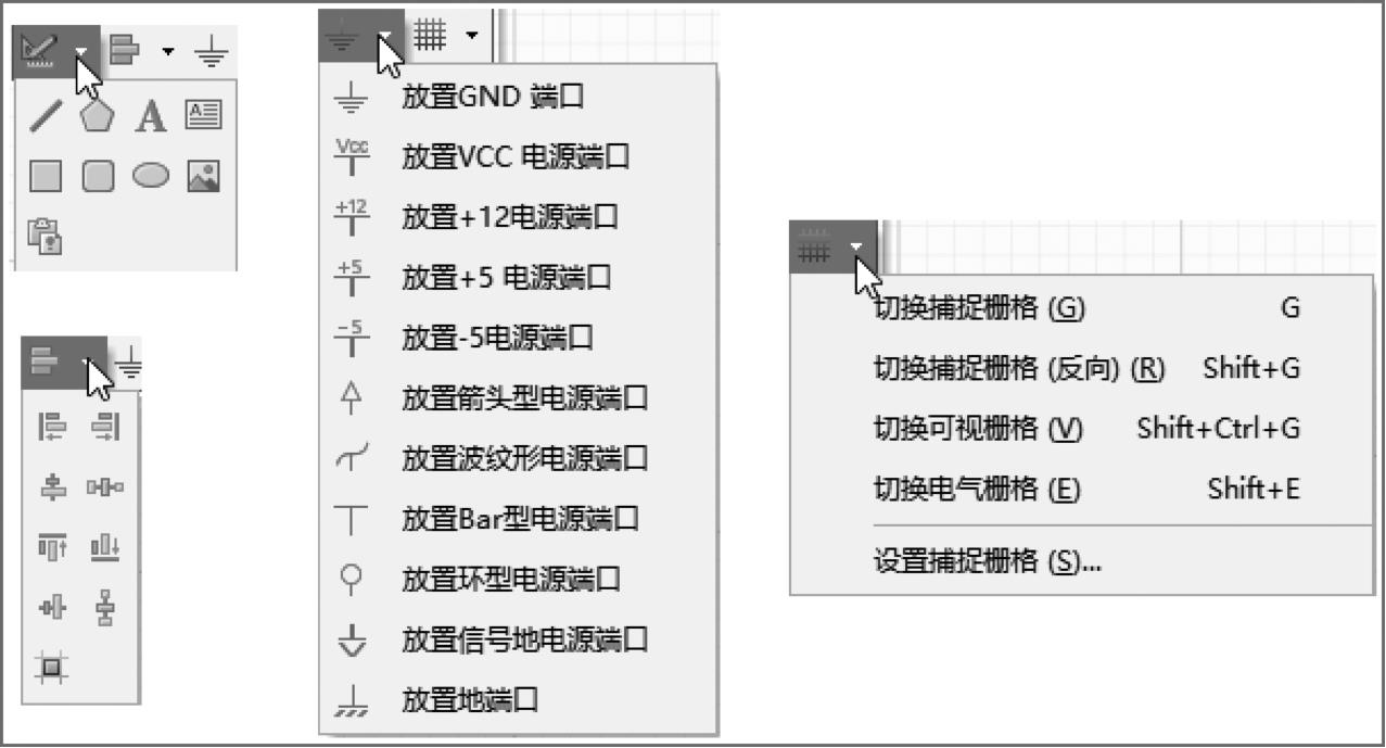 ● Place:用于放置原理图中各种电气元器件符号和注释符号。