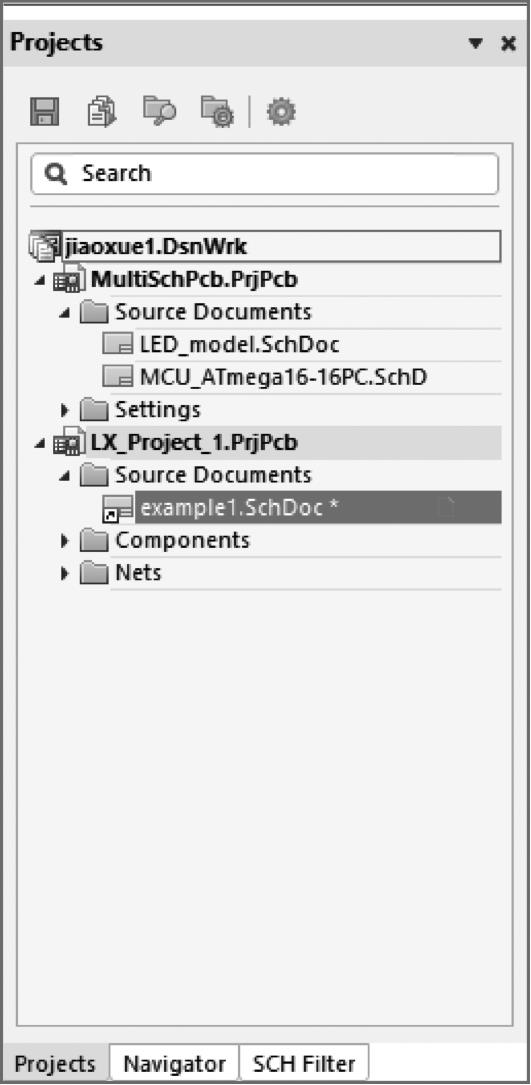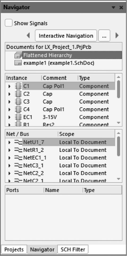 “Navigator”面板在分析和编译原理图后能够提供原理图的所有信息,通常用于检查原理图,如图2-31所示。