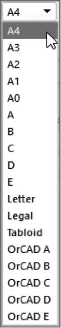 2)标准图纸。在图2-18所示属性面板中,单击“Standard”选项卡中“Sheet Size”的下拉列表,如图2-20所示,选择多种标准尺寸的图纸,系统默认图纸尺寸为A4。为方便设计者,系统提供了多种标准图纸尺寸选项。