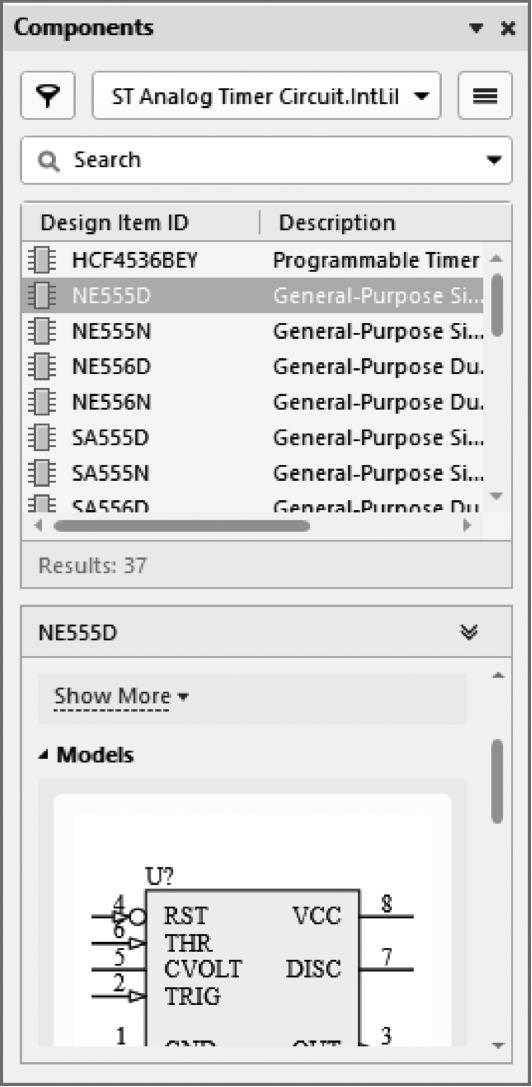 在“Components”面板中可以浏览当前加载的元器件库,而且通过该面板还可以在原理图上放置元器件,如图2-30所示。