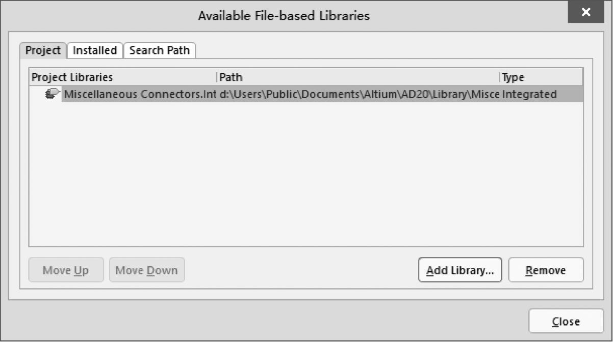 ● 在列表中选中某个元器件库后,单击“Remove”按钮就可以将该元器件库从当前开发环境移除。
